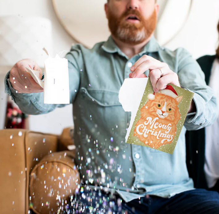 Endless Musical Greeting Card Christmas + Pull Surprise and Glitter Bomb